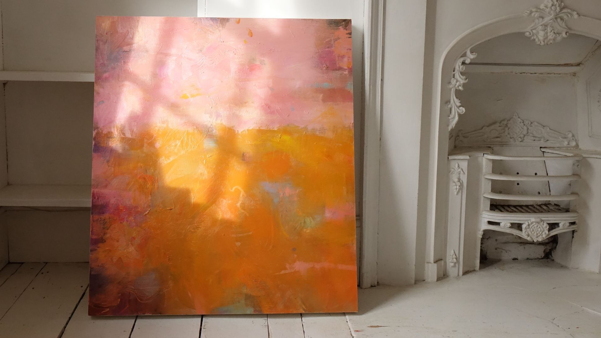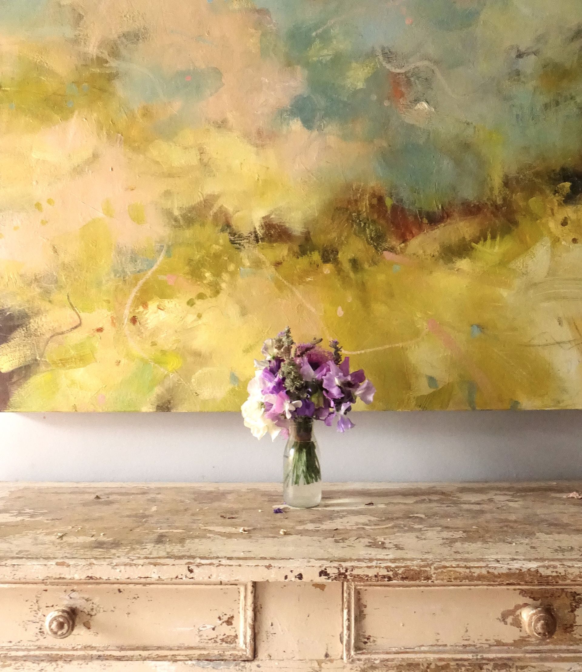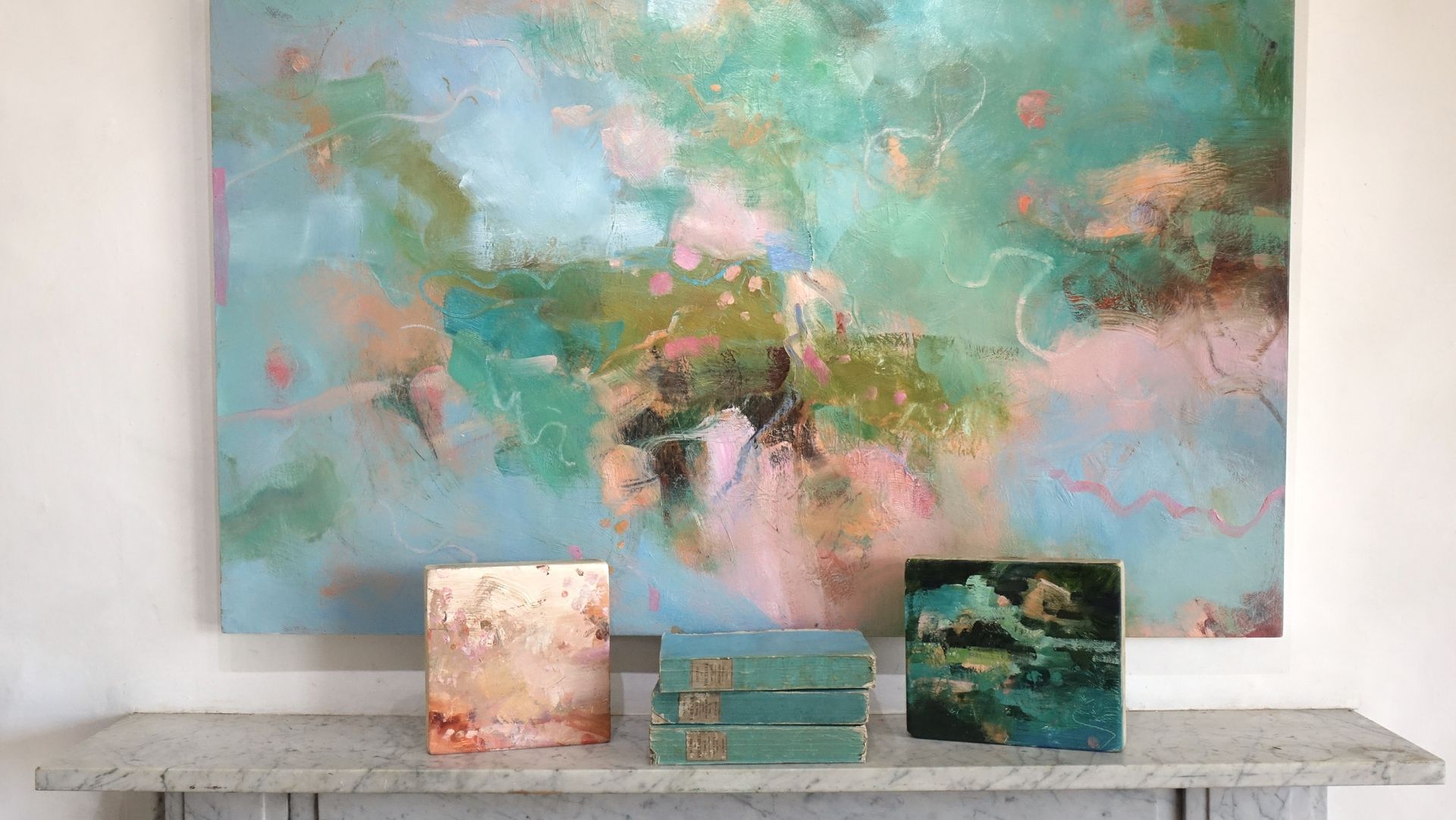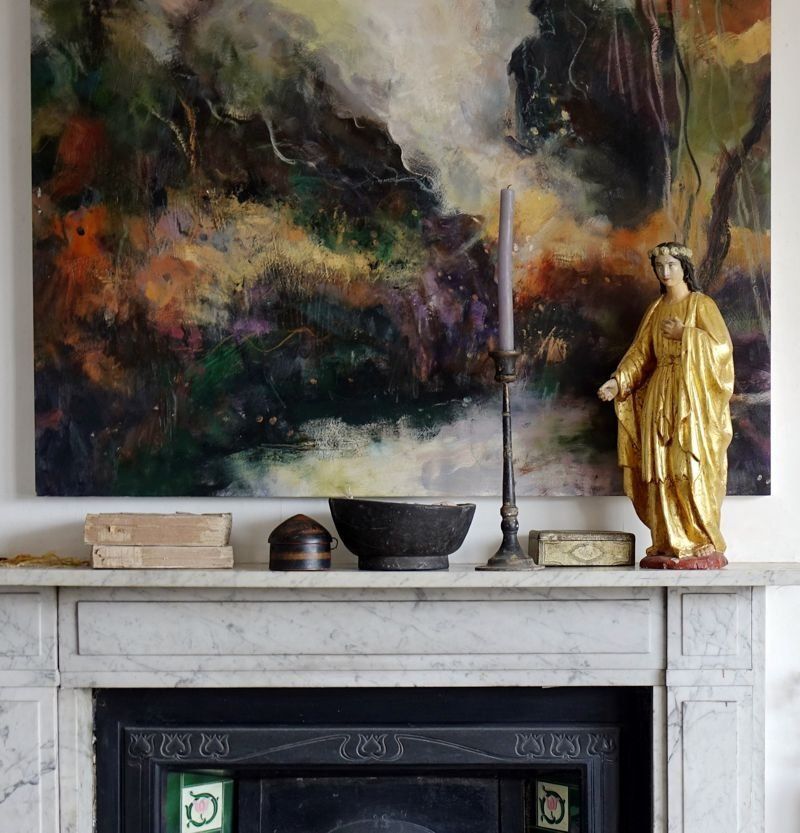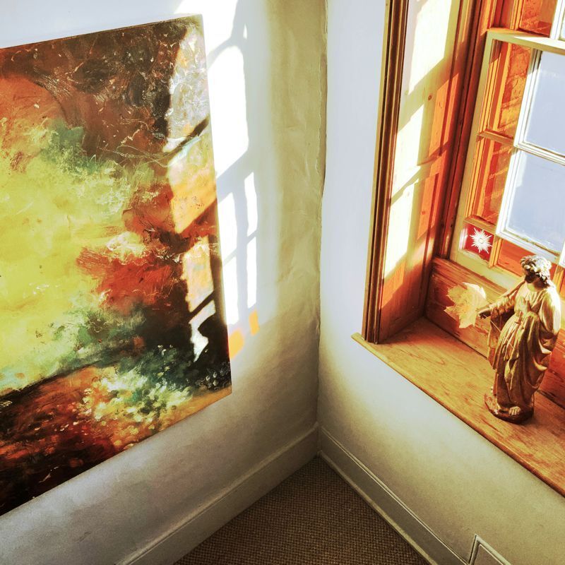 Below are some interior shots of the studio and house showing the working environment as well as paintings in situ and if there’s a specific painting anywhere on the site you’d like to see in your own home, we can superimpose any of the available images onto your own wall - just send a photo of your blank wall but leaving the furnishings in shot. Alternatively we can set it into one of our own home scenarios.