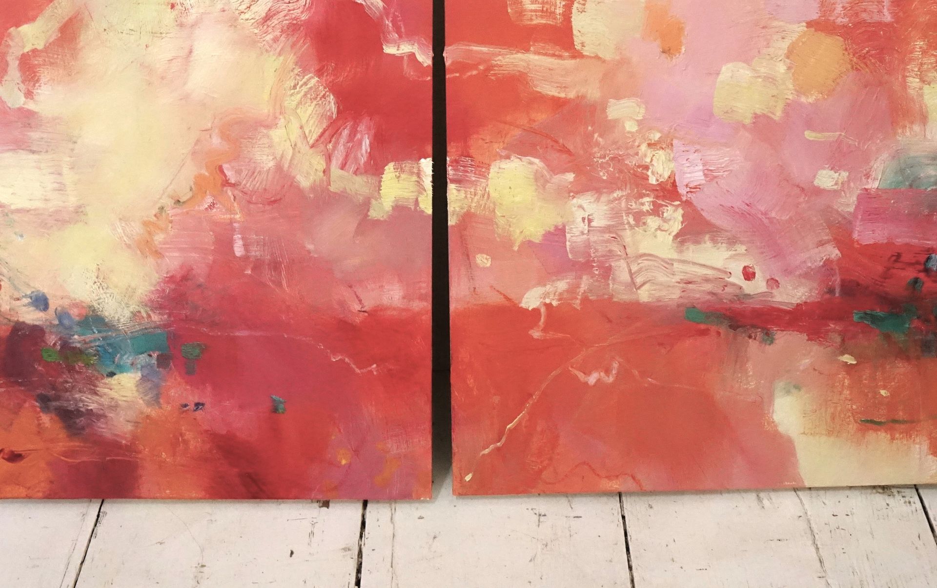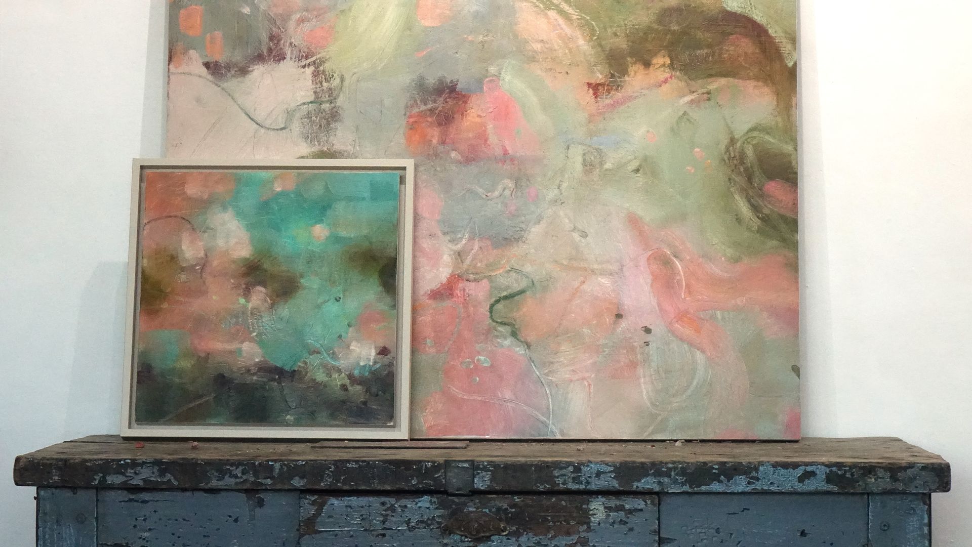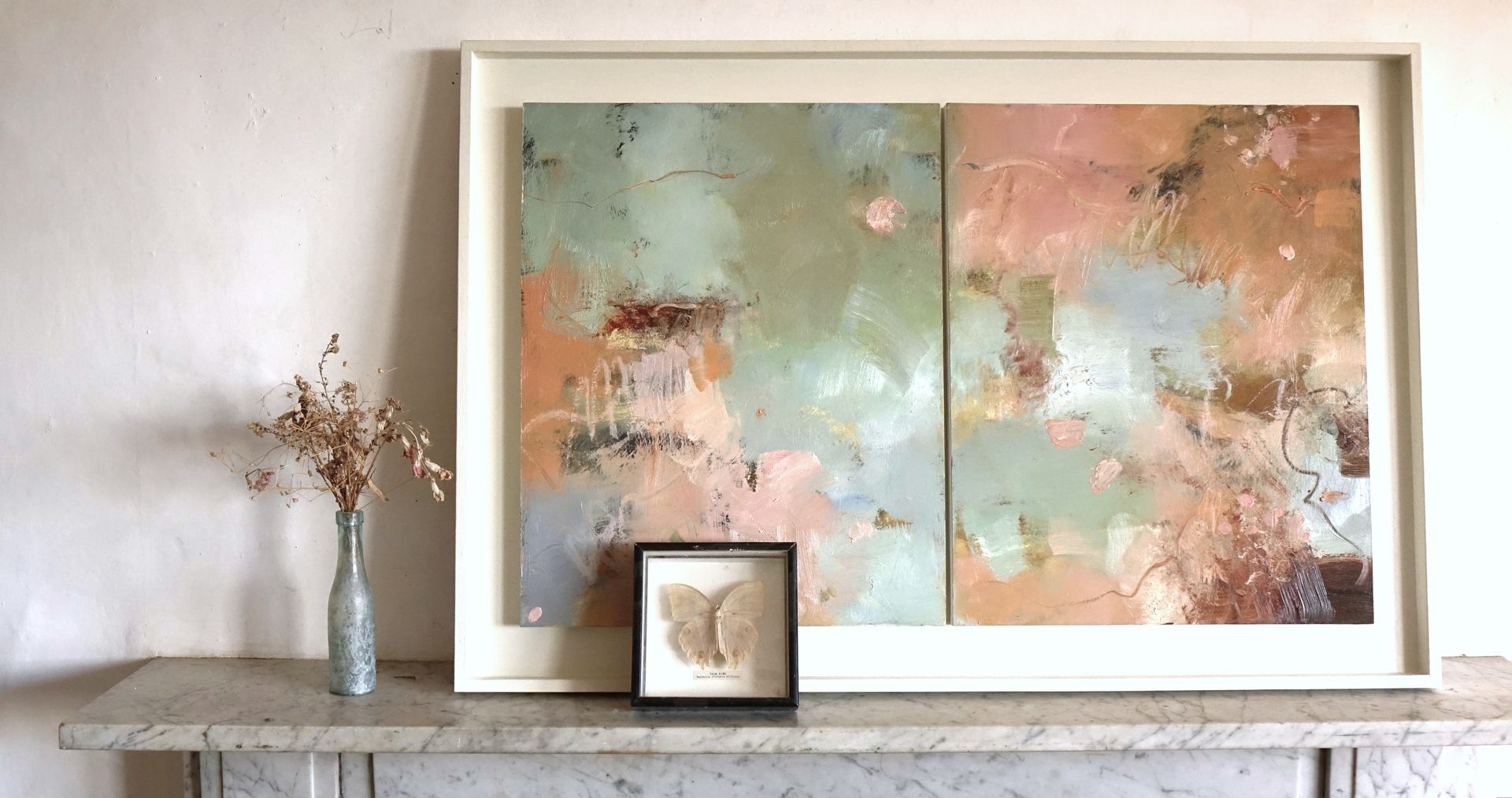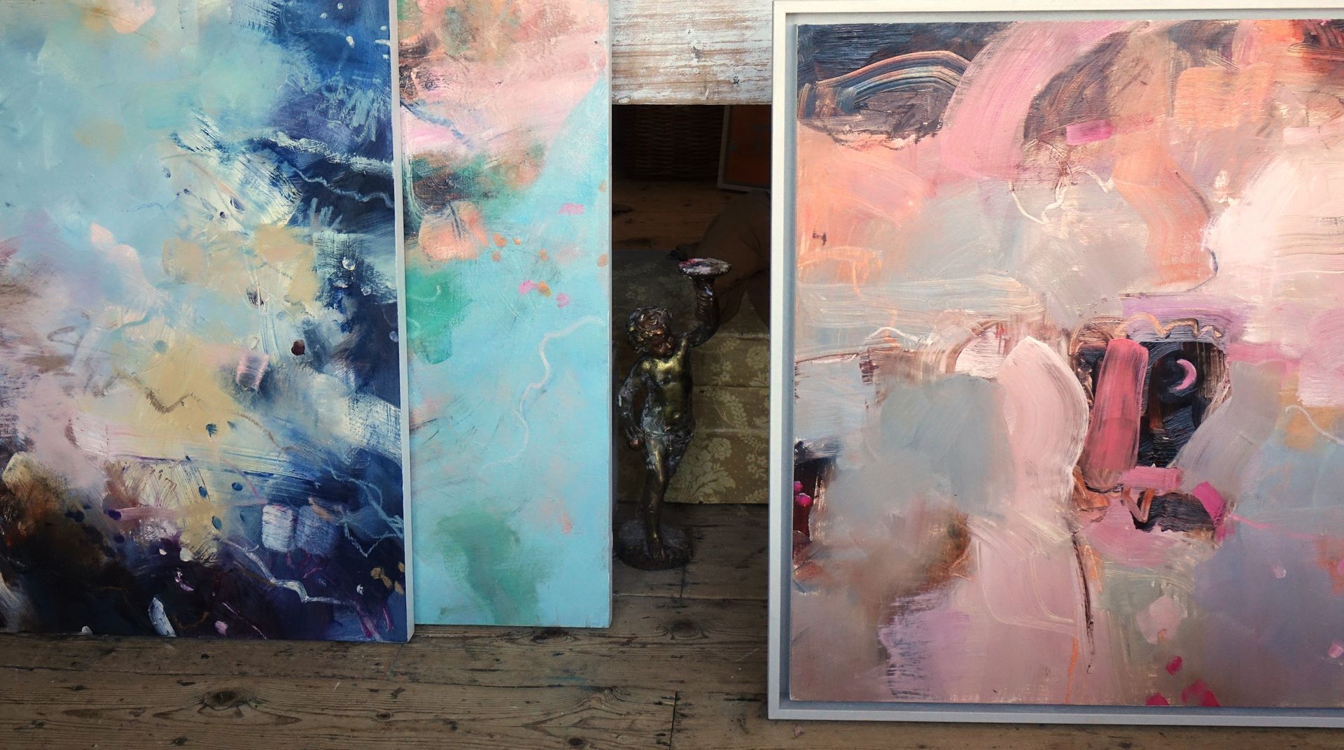 Below are some interior shots of the studio and house showing the working environment as well as paintings in situ and if there’s a specific painting anywhere on the site you’d like to see in your own home, we can superimpose any of the available images onto your own wall - just send a photo of your blank wall but leaving the furnishings in shot. Alternatively we can set it into one of our own home scenarios.