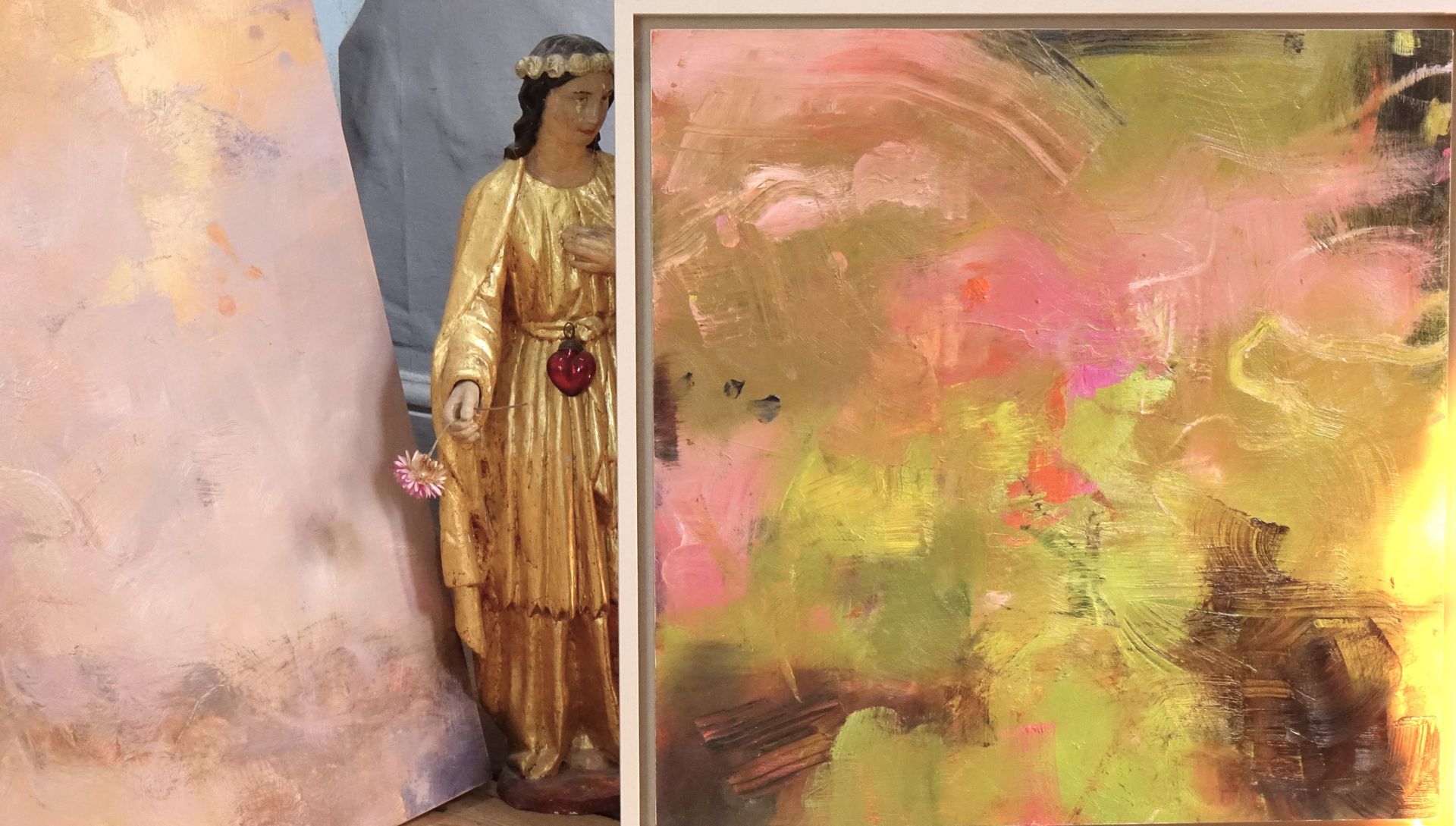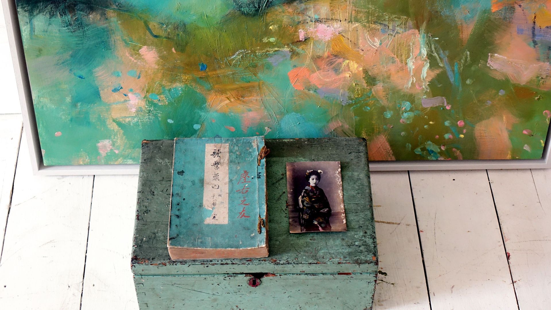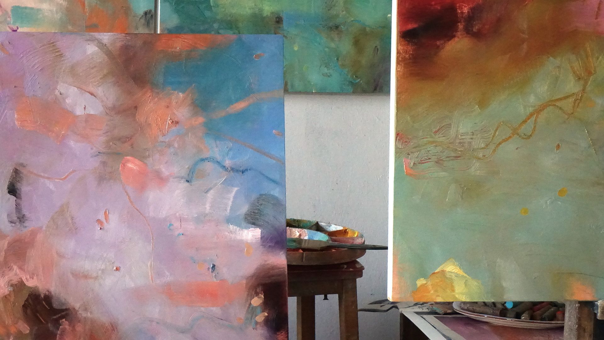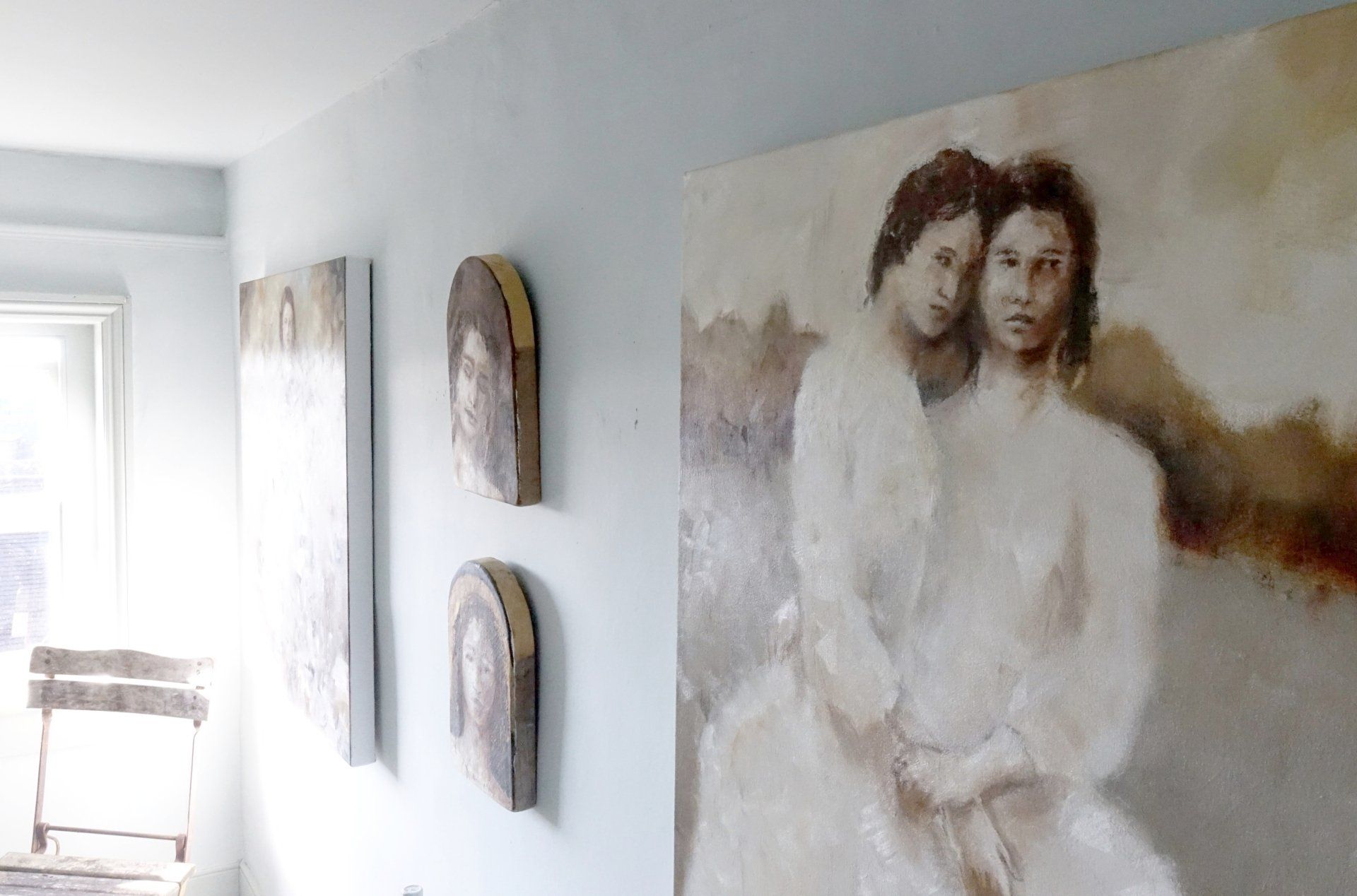 Below are some interior shots of the studio and house showing the working environment as well as paintings in situ and if there’s a specific painting anywhere on the site you’d like to see in your own home, we can superimpose any of the available images onto your own wall - just send a photo of your blank wall but leaving the furnishings in shot. Alternatively we can set it into one of our own home scenarios.